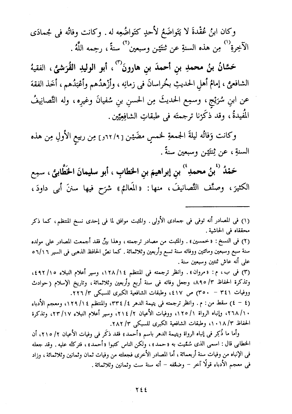 حَسَّانُ بْنُ مُحَمَّدِ بْنِ أَحْمَدَ بْنِ هَارُونَ، أَبُو الْوَلِيدِ الْقُرَشِيُّ، الْفَقِيهُ الشَّافِعِيُّ، إِمَامُ أَهْلِ الْحَدِيثِ بِخُرَاسَانَ فِي زَمَانِهِ، وَأَزْهَدُهُمْ وَأَعْبَدُهُمْ، أَخَذَ الْفِقْهَ عَنِ ابْنِ سُرَيْجٍ وَسَمِعَ الْحَدِيثَ مِنَ الْحَسَنِ بْنِ سُفْيَانَ وَغَيْرِهِ، وَلَهُ التَّصَانِيفُ الْمُفِيدَةُ، وَقَدْ ذَكَرْنَا تَرْجَمَتَهُ فِي طَبَقَاتِ الشَّافِعِيِّينَ.