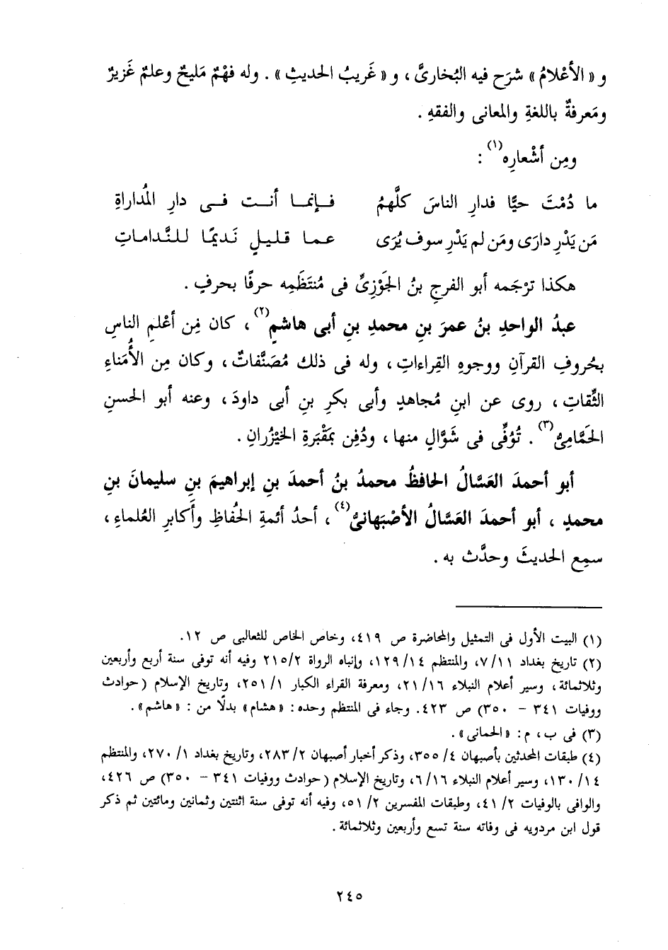 هَكَذَا تَرْجَمَهُ أَبُو الْفَرَجِ بْنُ الْجَوْزِيِّ فِي مُنْتَظَمِهِ حَرْفًا بِحَرْفٍ.