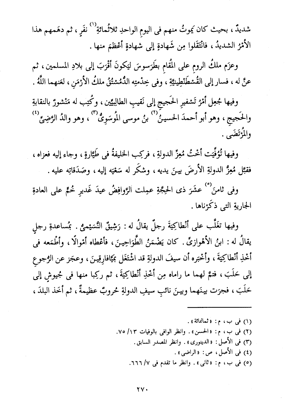 وَعَزَمَ مَلِكُ الرُّومِ عَلَى الْمُقَامِ بِطَرَسُوسَ لِيَكُونَ أَقْرَبَ إِلَى بِلَادِ الْمُسْلِمِينَ، ثُمَّ عَنَّ لَهُ، فَسَارَ إِلَى الْقُسْطَنْطِينِيَّةِ وَفِي خِدْمَتِهِ الدُّمُسْتُقُ مَلِكُ الْأَرْمَنِ، لَعَنَهُمَا اللَّهُ.