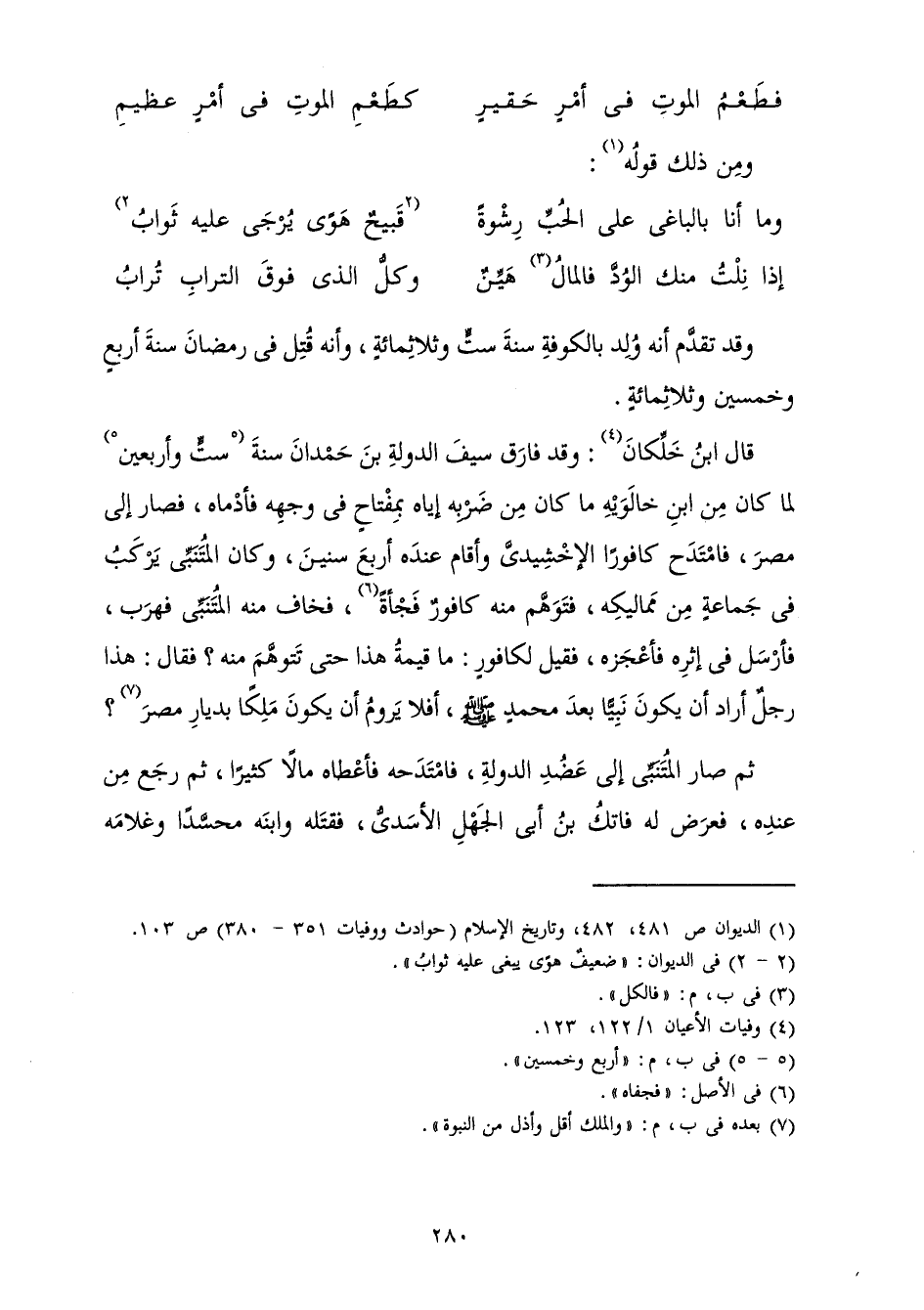 وَقَدْ تَقَدَّمَ أَنَّهُ وُلِدَ بِالْكُوفَةِ سَنَةَ سِتٍّ وَثَلَاثِمِائَةٍ، وَأَنَّهُ قُتِلَ فِي رَمَضَانَ سَنَةَ أَرْبَعٍ وَخَمْسِينَ وَثَلَاثِمِائَةٍ.