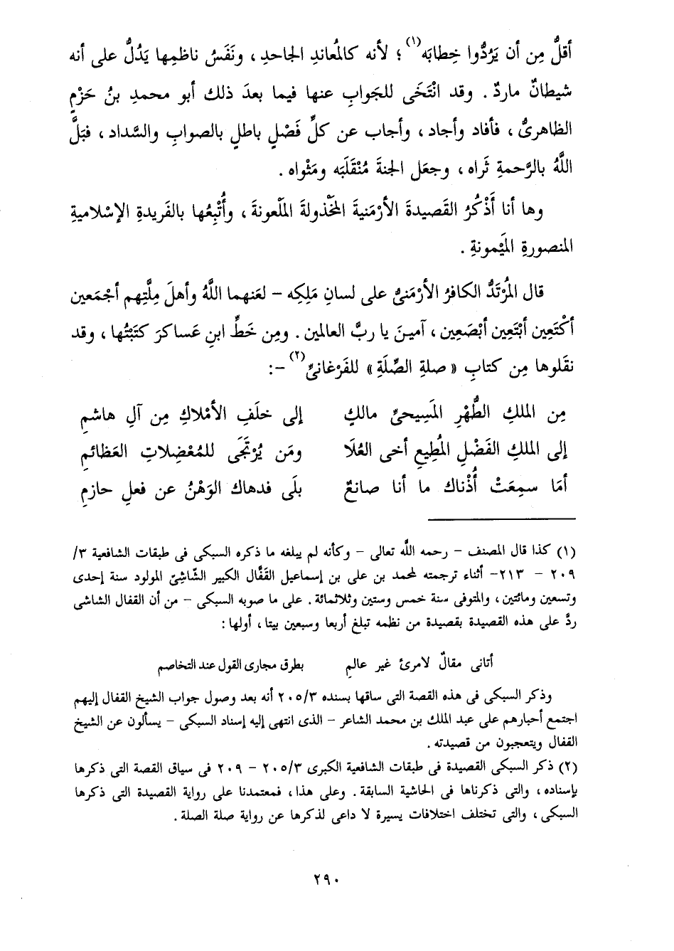 وَهَا أَنَا أَذْكُرُ الْقَصِيدَةَ الْأَرْمَنِيَّةَ الْمَخْذُولَةَ الْمَلْعُونَةَ، وَأُتْبِعُهَا بِالْفَرِيدَةِ الْإِسْلَامِيَّةِ الْمَنْصُورَةِ الْمَيْمُونَةِ.