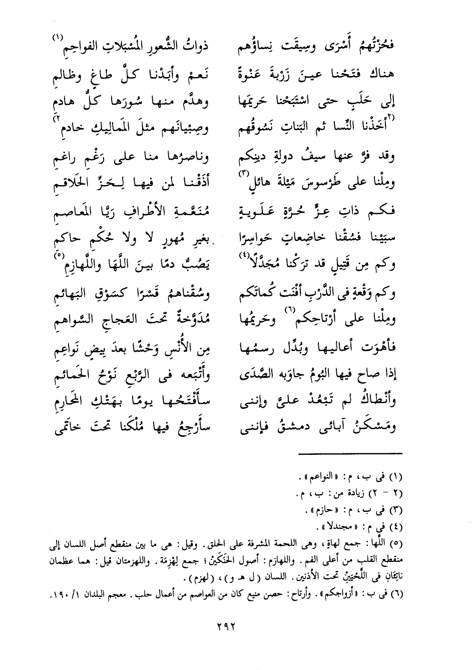 إِلَى حَلَبٍ حَتَّى اسْتَبَحْنَا حَرِيمَهَا ... وَهَدَّمَ مِنْهَا سُورَهَا كُلُّ هَادِمِ