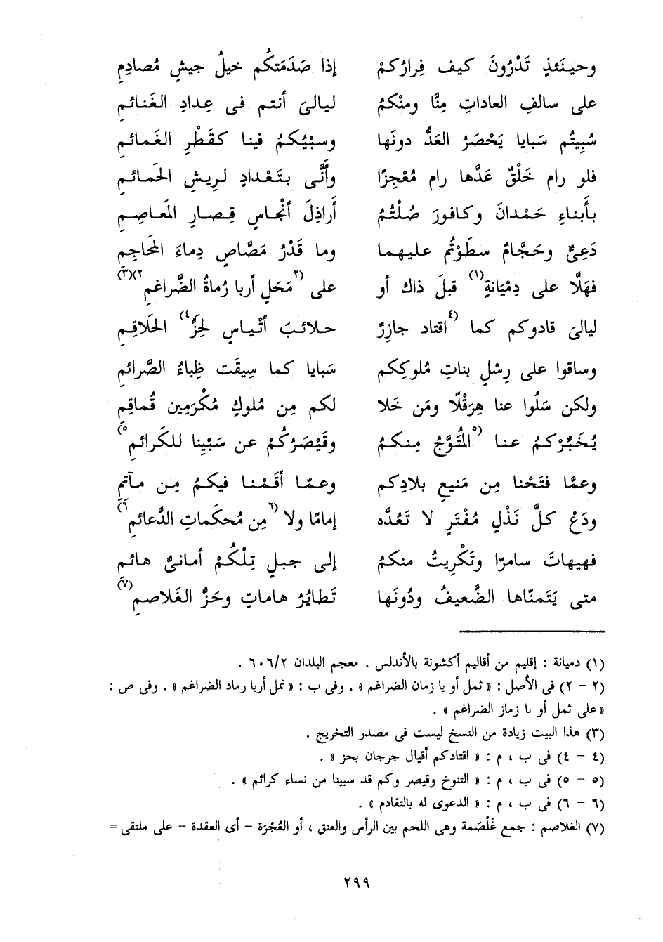 لَيَالِيَ أَنْتُمْ فِي عِدَادِ الْغَنَائِمِ ... سُبِيتُمْ سَبَايَا يَحْصَرُ الْعَدُّ دُونَهَا