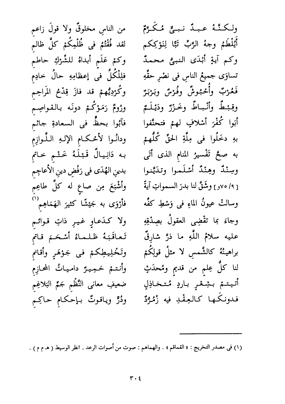 وَكَمْ عِلْمٍ أَبْدَاهُ لِلشِّرْكِ حَاطِمِ ... تَسَاوَى جَمِيعُ النَّاسِ فِي نَصْرِ حَقِّهِ