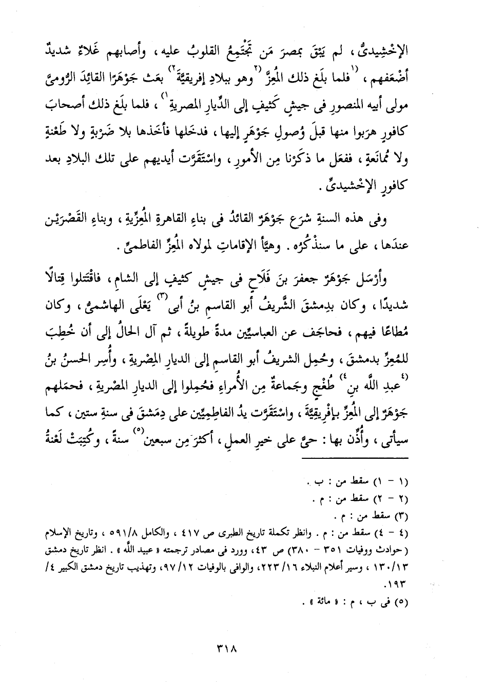 وَفِي هَذِهِ السَّنَةِ شَرَعَ جَوْهَرٌ الْقَائِدُ فِي بِنَاءِ الْقَاهِرَةِ الْمُعِزِّيَّةِ، وَبِنَاءِ الْقَصْرَيْنِ عِنْدَهَا، عَلَى مَا سَنَذْكُرُهُ. وَهَيَّأَ الْإِقَامَاتِ لِمَوْلَاهُ الْمُعِزِّ الْفَاطِمِيِّ.