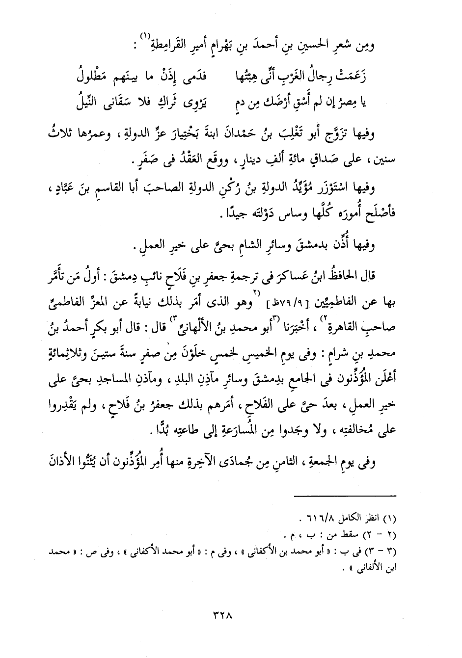 وَمِنْ شَعْرِ الْحُسَيْنِ بْنِ أَحْمَدَ بْنِ بَهْرَامٍ أَمِيرِ الْقَرَامِطَةِ: