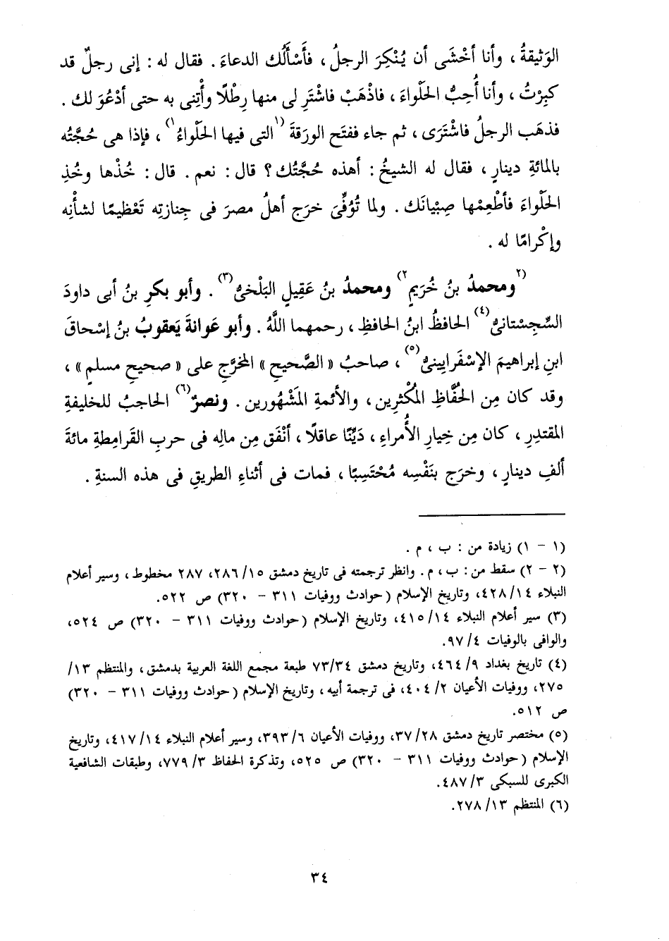 وَمُحَمَّدُ بْنُ خُرَيْمٍ، وَمُحَمَّدُ بْنُ عَقِيلٍ الْبَلْخِيُّ. وَأَبُو بَكْرِ بْنُ أَبِي دَاوُدَ السِّجِسْتَانِيُّ الْحَافِظُ ابْنُ الْحَافِظِ، رَحِمَهُمَا اللَّهُ. وَأَبُو عَوَانَةَ يَعْقُوبُ بْنُ إِسْحَاقَ بْنِ إِبْرَاهِيمَ الْإِسْفَرَايِينِيُّ، صَاحِبُ " الصَّحِيحِ " الْمُخَرَّجِ عَلَى " صَحِيحِ مُسْلِمٍ " وَقَدْ كَانَ مِنَ الْحُفَّاظِ الْمُكْثِرِينَ، وَالْأَئِمَّةِ الْمَشْهُورِينَ. وَنَصْرٌ الْحَاجِبُ لِلْخَلِيفَةِ الْمُقْتَدِرِ، كَانَ مِنْ خِيَارِ الْأُمَرَاءِ، دَيِّنًا عَاقِلًا، أَنْفَقَ مِنْ مَالِهِ فِي حَرْبِ الْقَرَامِطَةِ مِائَةَ أَلْفِ دِينَارٍ، وَخَرَجَ بِنَفْسِهِ مُحْتَسِبًا، فَمَاتَ فِي أَثْنَاءِ الطَّرِيقِ فِي هَذِهِ السَّنَةِ.