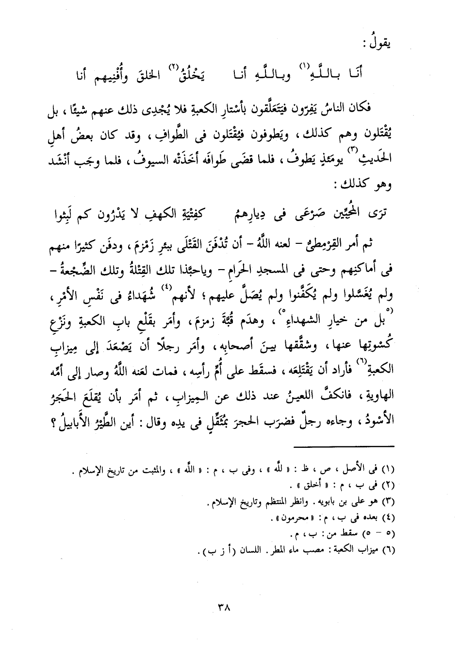 أَنَا بِاللَّهِ وَبِاللَّهِ أَنَا ... يَخْلُقُ الْخَلْقَ وَأُفْنِيهِمْ أَنَا