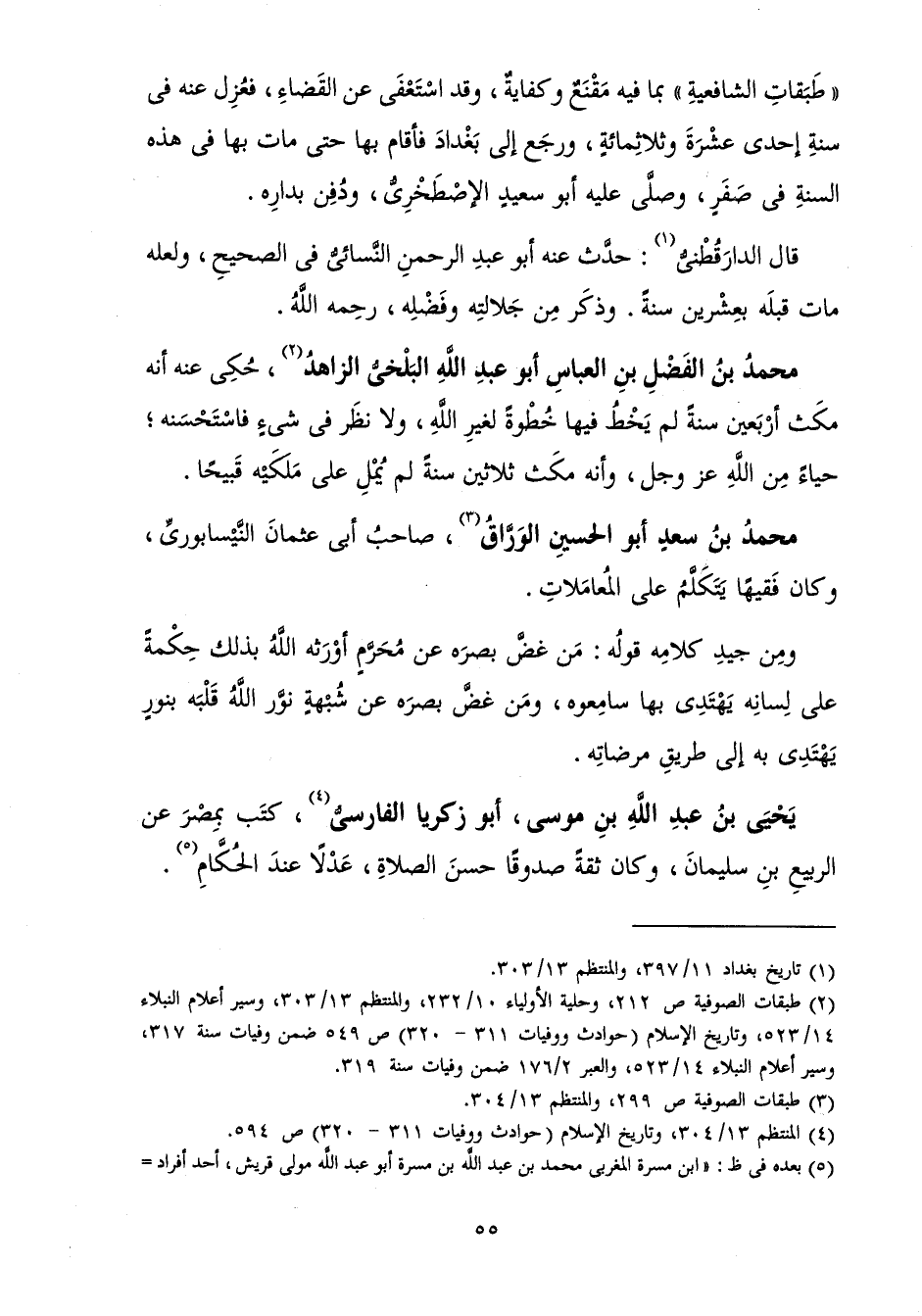 " طَبَقَاتِ الشَّافِعِيَّةِ " بِمَا فِيهِ مَقْنَعٌ وَكِفَايَةٌ، وَقَدِ اسْتَعْفَى عَنِ الْقَضَاءِ، فَعُزِلَ عَنْهُ فِي سَنَةِ إِحْدَى عَشْرَةَ وَثَلَاثِمِائَةٍ، وَرَجَعَ إِلَى بَغْدَادَ فَأَقَامَ بِهَا حَتَّى مَاتَ بِهَا فِي هَذِهِ السَّنَةِ فِي صَفَرٍ، وَصَلَّى عَلَيْهِ أَبُو سَعِيدٍ الْإِصْطَخْرِيُّ، وَدُفِنَ بِدَارِهِ.