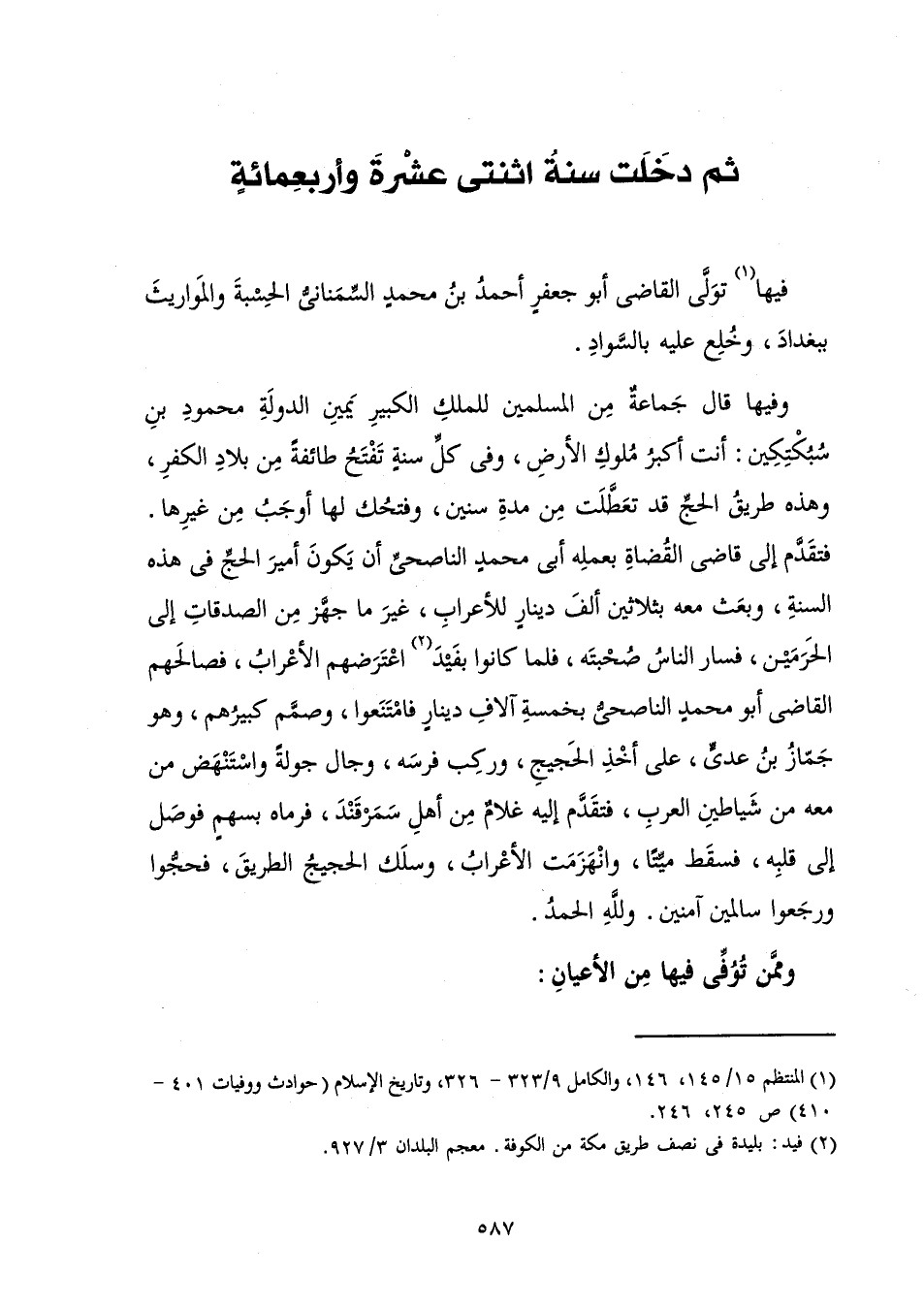 [ثُمَّ دَخَلَتْ سَنَةُ اثْنَتَيْ عَشْرَةَ وَأَرْبَعِمِائَةٍ]