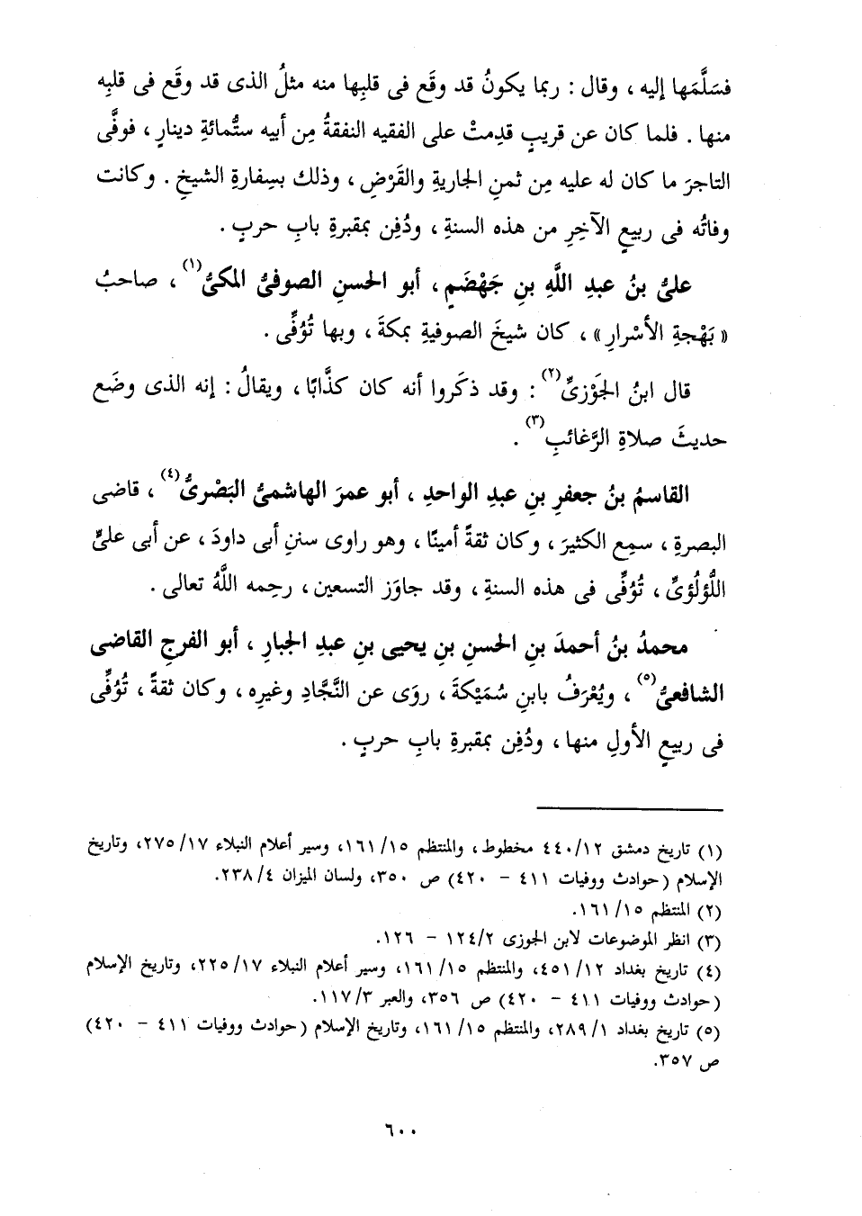قَاضِي الْبَصْرَةِ، سَمِعَ الْكَثِيرَ، وَكَانَ ثِقَةً أَمِينًا، وَهُوَ رَاوِي سُنَنِ أَبِي دَاوُدَ، عَنْ أَبِي عَلِيٍّ اللُّؤْلُؤِيِّ. تُوُفِّيَ فِي هَذِهِ السَّنَةِ، وَقَدْ جَاوَزَ التِّسْعِينَ، رَحِمَهُ اللَّهُ تَعَالَى.