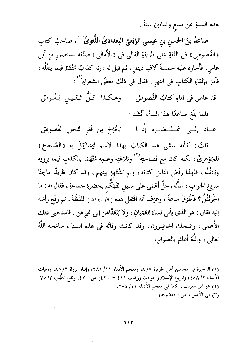 صَاعِدُ بْنُ الْحَسَنِ بْنِ عِيسَى الرَّبَعِيُّ الْبَغْدَادِيُّ اللُّغَوِيُّ