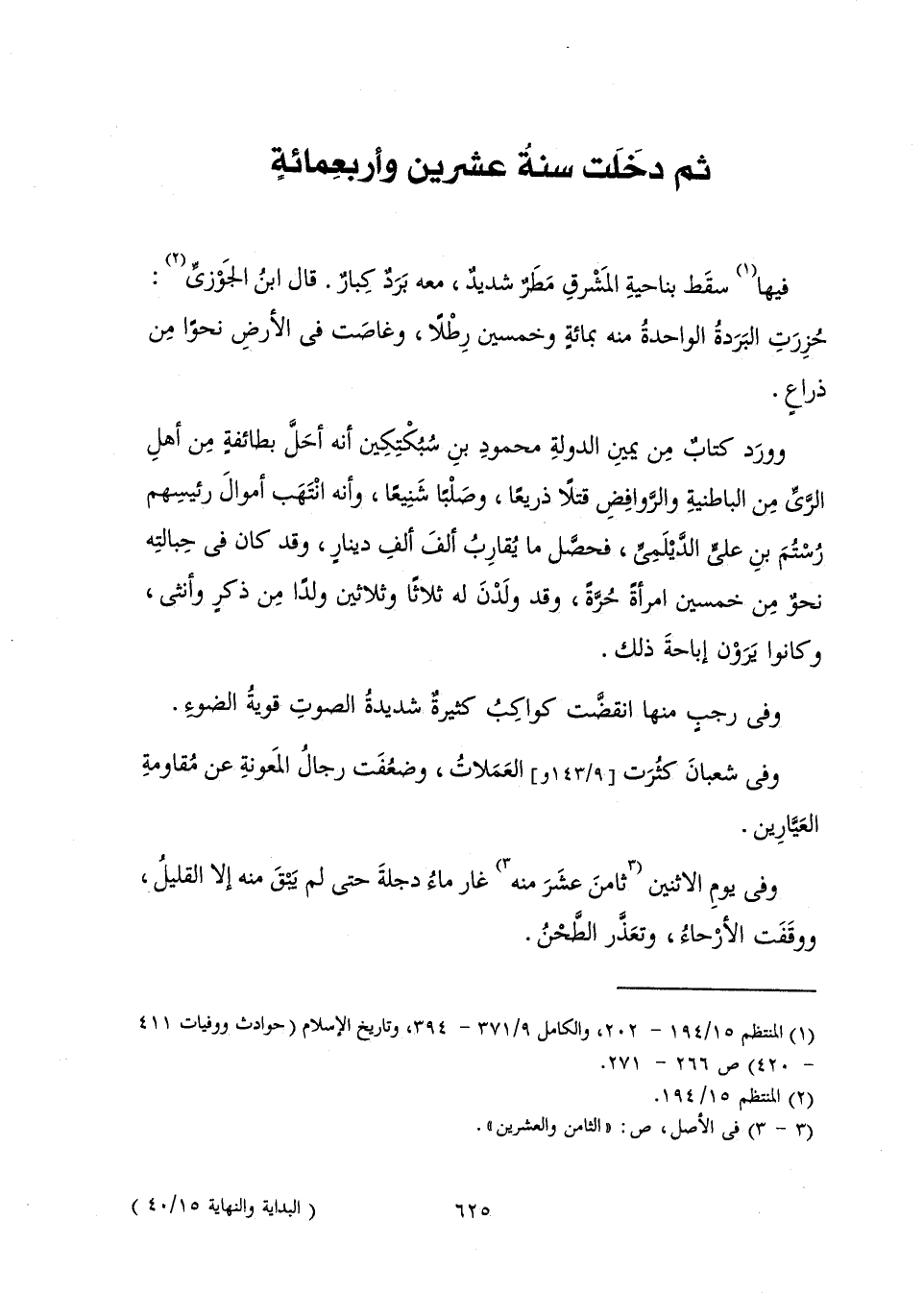 [ثُمَّ دَخَلَتْ سَنَةُ عِشْرِينَ وَأَرْبَعِمِائَةٍ]