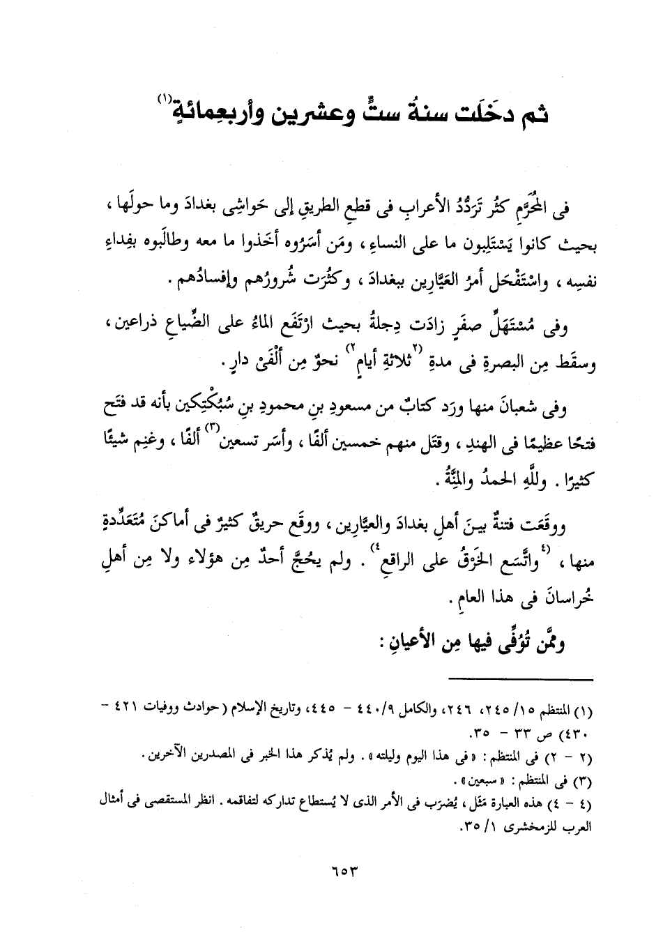 [ثُمَّ دَخَلَتْ سَنَةُ سِتٍّ وَعِشْرِينَ وَأَرْبَعِمِائَةٍ]
