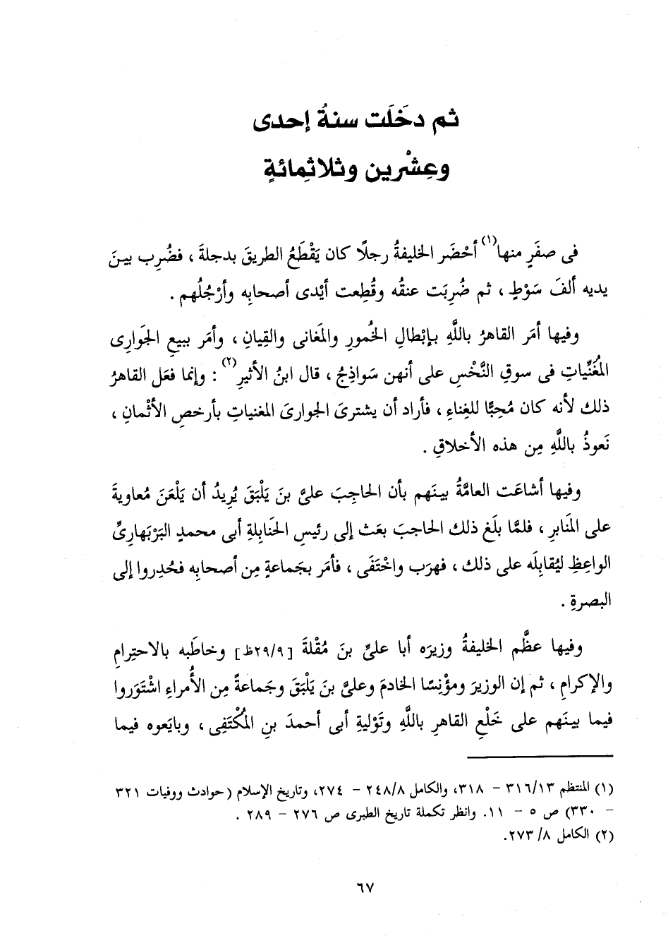 [ثُمَّ دَخَلَتْ سَنَةُ إِحْدَى وَعِشْرِينَ وَثَلَاثِمِائَةٍ]