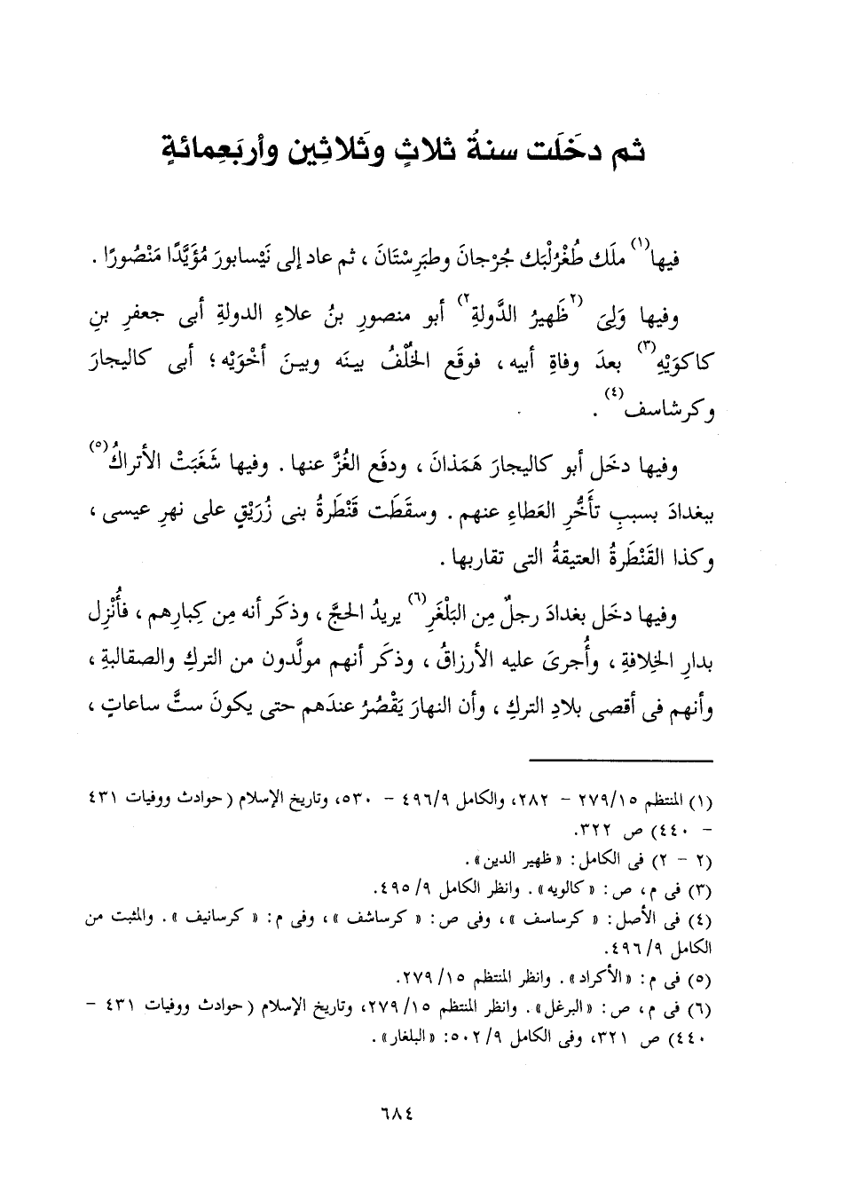 [ثُمَّ دَخَلَتْ سَنَةُ ثَلَاثٍ وَثَلَاثِينَ وَأَرْبَعِمِائَةٍ]