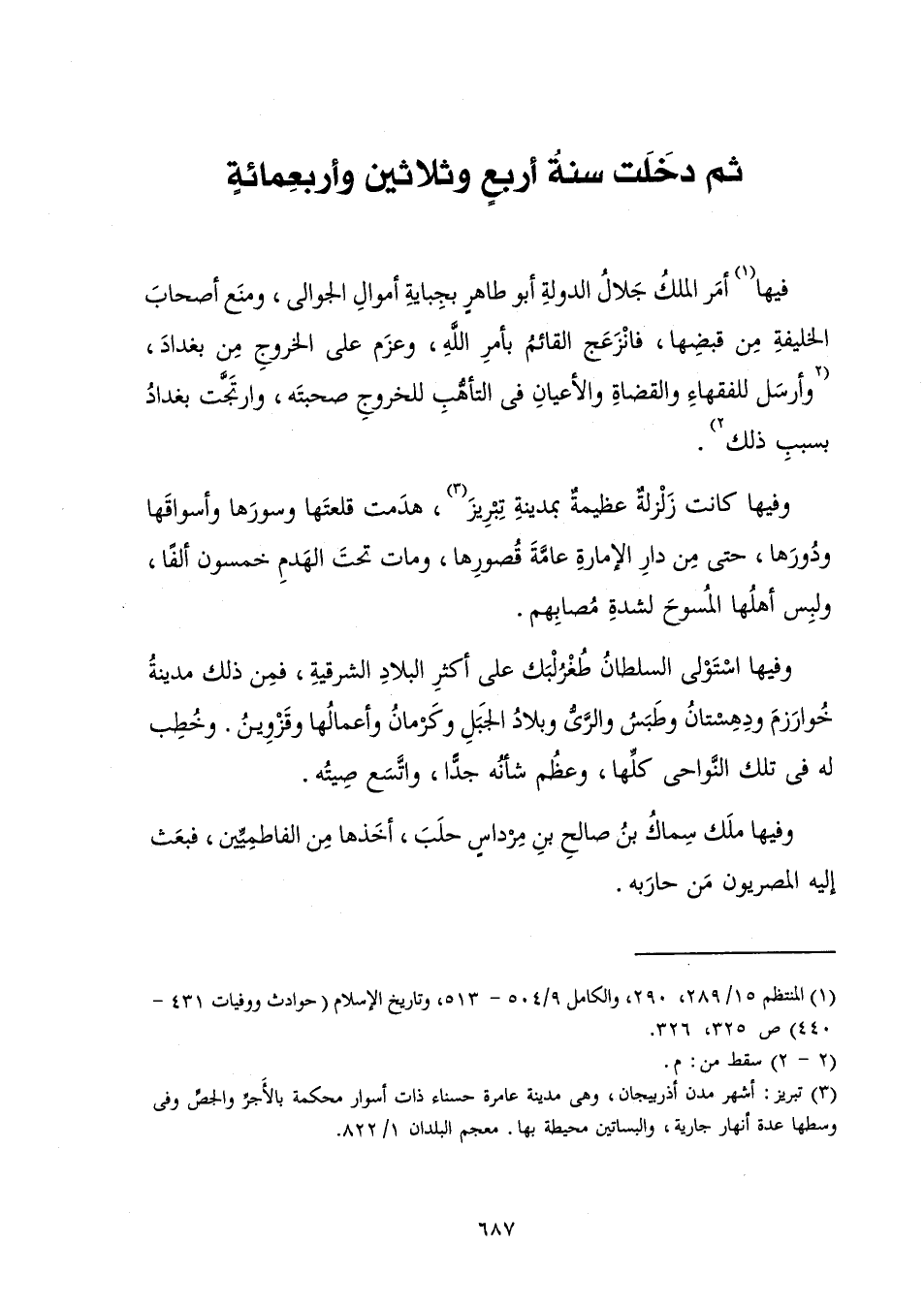 [ثُمَّ دَخَلَتْ سَنَةُ أَرْبَعٍ وَثَلَاثِينَ وَأَرْبَعِمِائَةٍ]