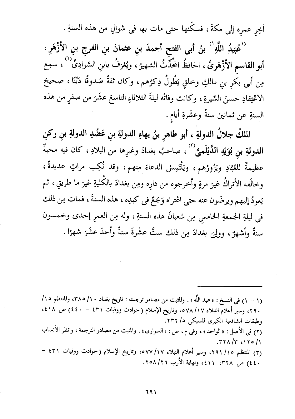 الْحَافِظُ الْمُحَدِّثُ الشَّهِيرُ، وَيُعْرَفُ بِابْنِ السَّوَادِيِّ، سَمِعَ مِنْ أَبِي بَكْرِ بْنِ مَالِكٍ وَخَلْقٍ يَطُولُ ذِكْرُهُمْ، وَكَانَ ثِقَةً صَدُوقًا دَيِّنًا، صَحِيحَ الِاعْتِقَادِ حَسَنَ السِّيرَةِ، وَكَانَتْ وَفَاتُهُ لَيْلَةَ الثُّلَاثَاءِ التَّاسِعَ عَشَرَ مِنْ صَفَرٍ مِنْ هَذِهِ السَّنَةِ عَنْ ثَمَانِينَ سَنَةً وَعَشَرَةِ أَيَّامٍ.