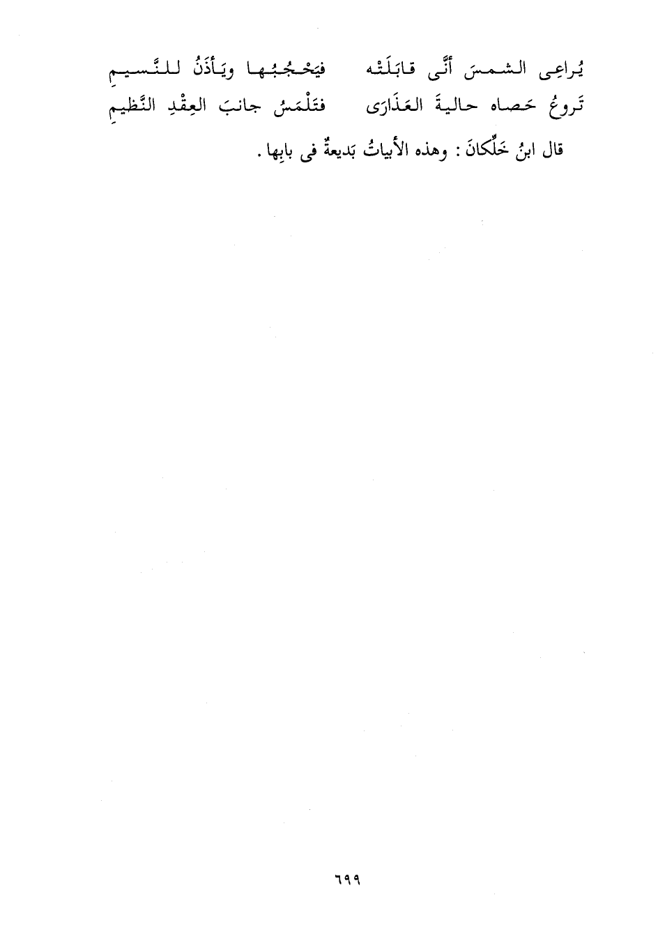 قَالَ ابْنُ خَلِّكَانَ: وَهَذِهِ الْأَبْيَاتُ بَدِيعَةٌ فِي بَابِهَا.