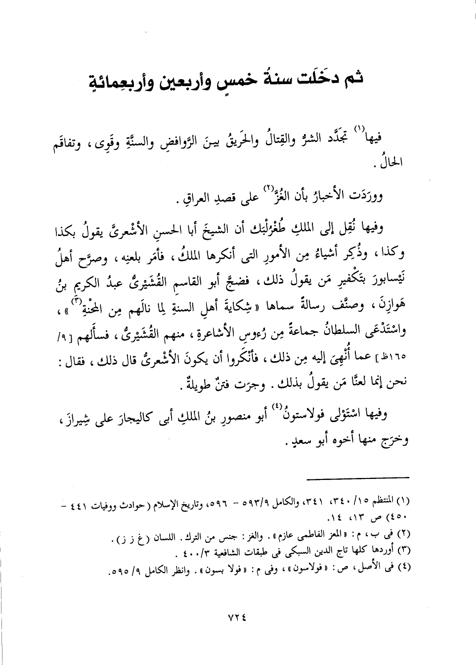 [ثُمَّ دَخَلَتْ سَنَةُ خَمْسٍ وَأَرْبَعِينَ وَأَرْبَعِمِائَةٍ]