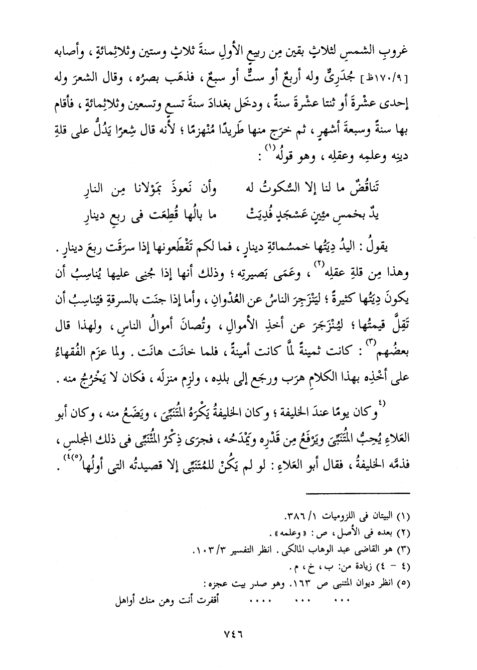 يَدٌ بِخَمْسِ مِئِينَ عَسْجَدٍ فُدِيَتْ ... مَا بَالَهَا قُطِعَتْ فِي رُبْعِ دِينَارِ