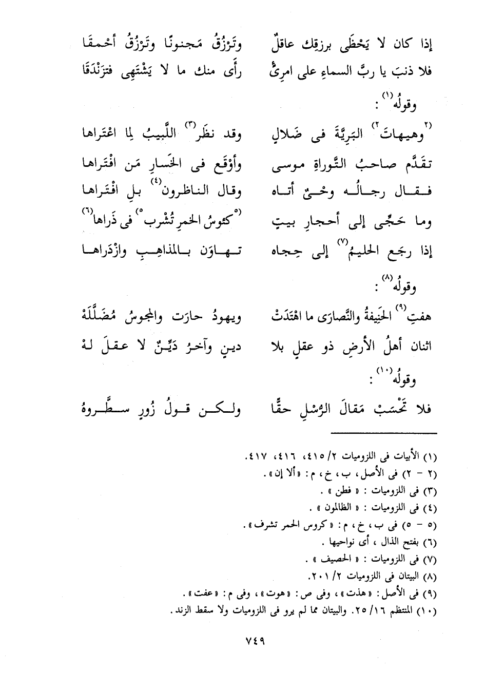 فَلَا ذَنْبَ يَا رَبَّ السَّمَاءِ عَلَى امْرِئٍ ... رَأَى مِنْكَ مَا لَا يَشْتَهِي فَتَزَنْدَقَا