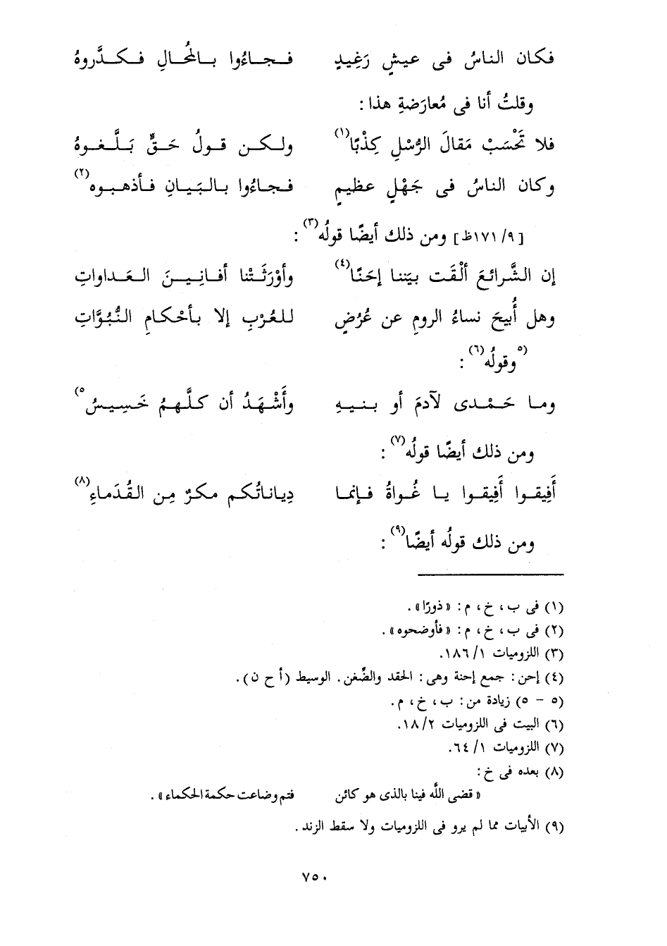 إِنَّ الشَّرَائِعَ أَلْقَتْ بَيْنَنَا إِحَنًا ... وَأَوْرَثَتْنَا أَفَانِينَ الْعَدَاوَاتِ