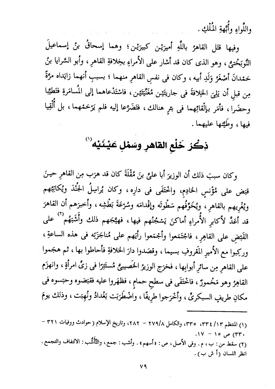 ذِكْرُ خَلْعِ الْقَاهِرِ وَسَمْلِ عَيْنَيْهِ