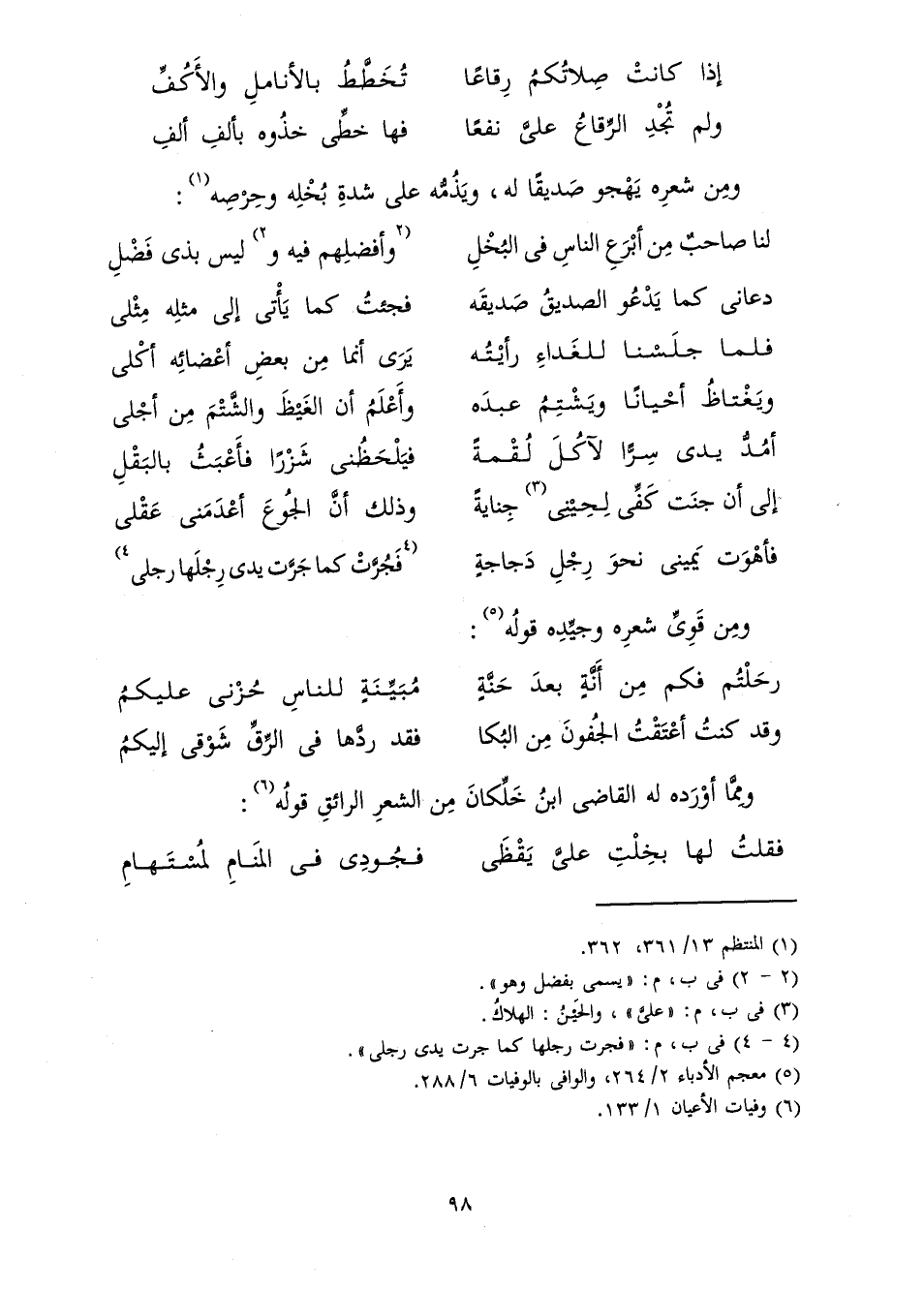 لَنَا صَاحِبٌ مِنْ أَبْرَعِ النَّاسِ فِي الْبُخْلِ ... وَأَفْضَلِهِمْ فِيهِ وَلَيْسَ بِذِي فَضْلِ