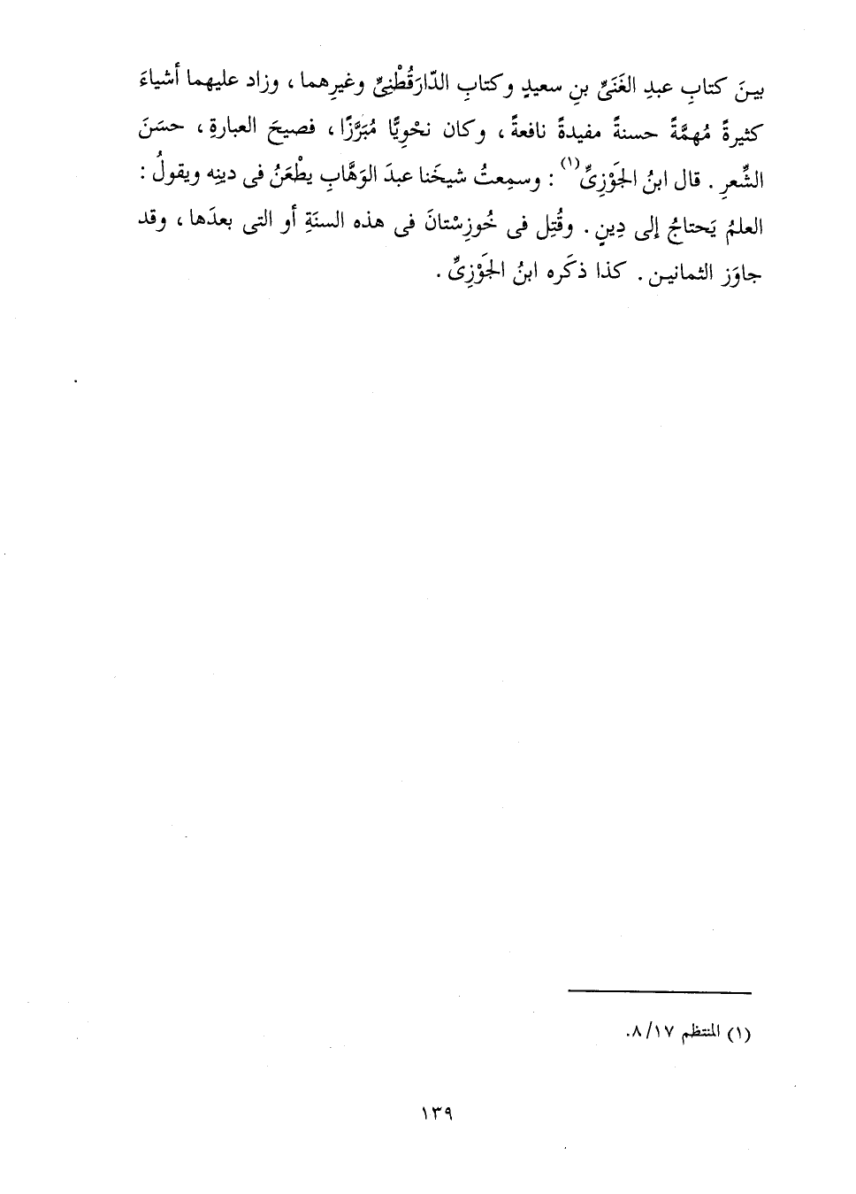 جَمَعَ بَيْنَ كِتَابِ عَبْدِ الْغَنِيِّ بْنِ سَعِيدٍ وَكِتَابِ الدَّرَاقُطْنِيِّ وَغَيْرِهِمَا وَزَادَ عَلَيْهِمَا أَشْيَاءَ كَثِيرَةً مُهِمَّةً حَسَنَةً مُفِيدَةً نَافِعَةً وَكَانَ نَحْوِيًّا مُبَرَّزًا فَصِيحَ الْعِبَارَةَ حَسَنَ الشِّعْرِ.