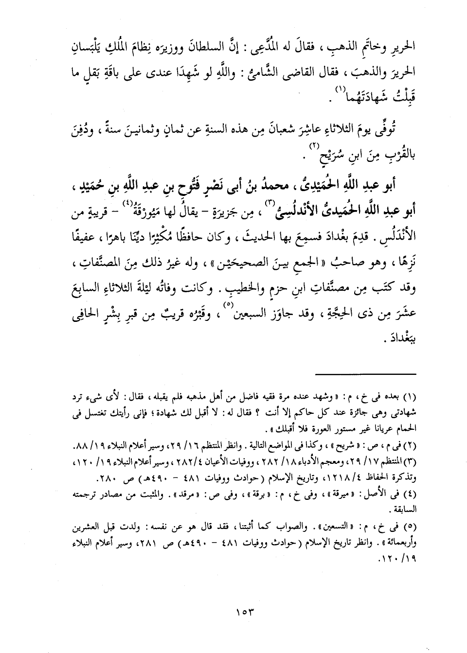 أَبُو عَبْدِ اللَّهِ الْحُمَيْدِيُّ مُحَمَّدُ بْنُ أَبِي نَصْرٍ فَتُّوحِ بْنِ عَبْدِ اللَّهِ بْنِ حُمَيْدٍ