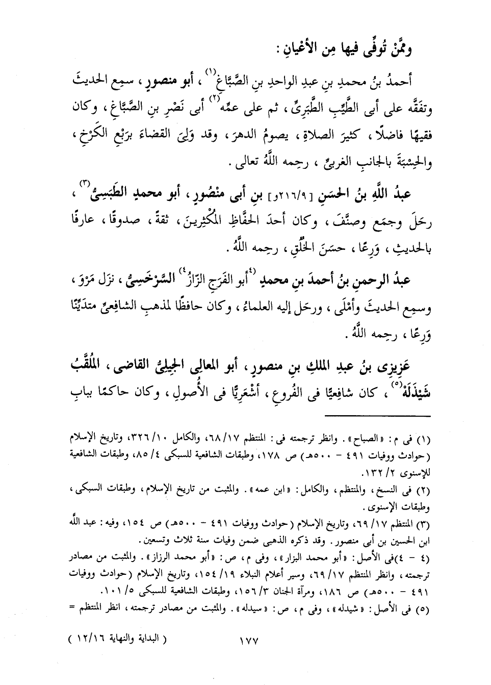 وَمِمَّنْ تُوُفِّيَ فِيهَا مِنَ الْأَعْيَانِ: