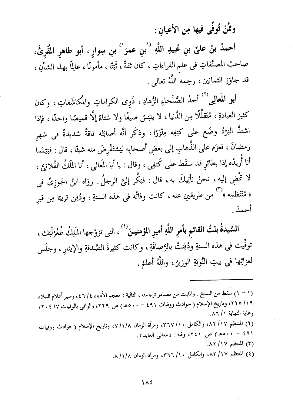أَبُو طَاهِرٍ الْمُقْرِئُ صَاحِبُ الْمُصَنَّفَاتِ فِي عُلُومِ الْقُرْآنِ كَانَ ثِقَةً ثَبَتًا مَأْمُونًا عَالِمًا بِهَذَا الشَّأْنِ، قَدْ جَاوَزَ الثَّمَانِينَ؛ رَحِمَهُ اللَّهُ تَعَالَى.