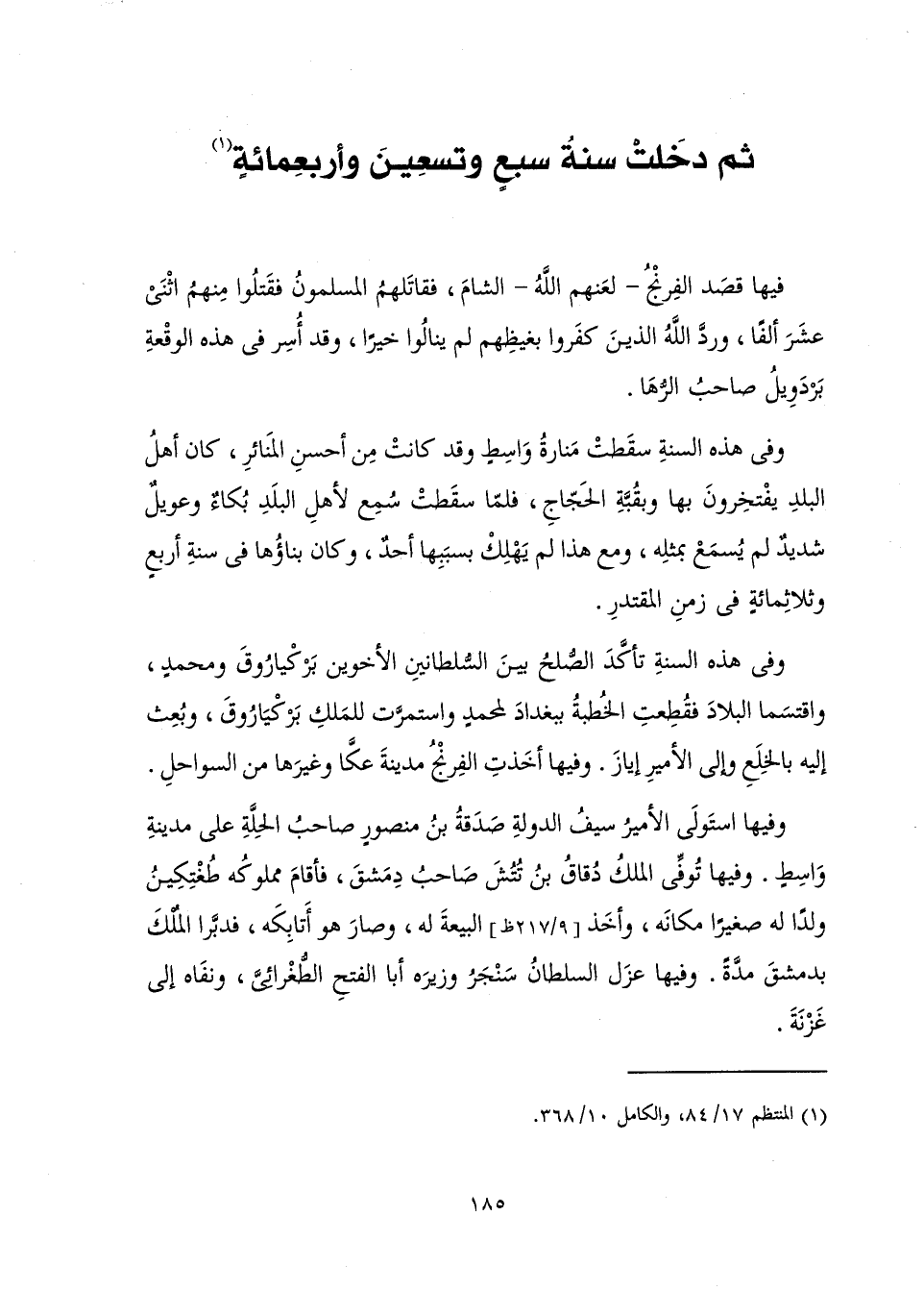 [ثُمَّ دَخَلَتْ سَنَةُ سَبْعٍ وَتِسْعِينَ وَأَرْبَعِمِائَةٍ]