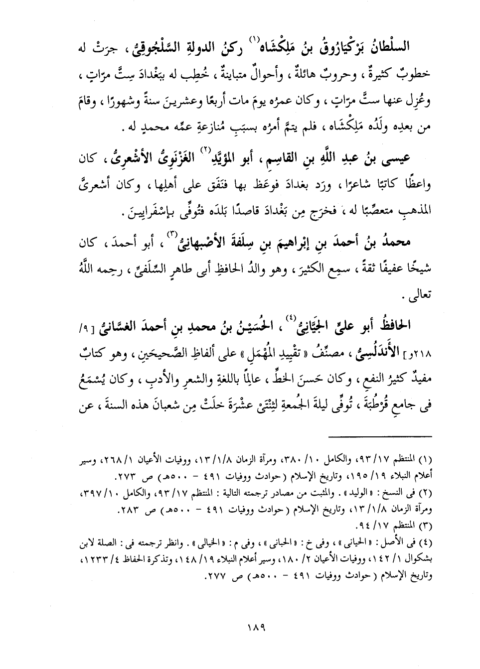السُّلْطَانُ بَرْكْيَارُوقُ بْنُ مَلِكْشَاهْ رُكْنُ الدَّوْلَةِ السَّلْجُوقِيُّ، جَرَتْ لَهُ خُطُوبٌ كَثِيرَةٌ، وَحُرُوبٌ هَائِلَةٌ، وَأَحْوَالٌ مُتَبَايِنَةٌ، خُطِبَ لَهُ بِبَغْدَادَ سِتَّ مَرَّاتٍ، وَعُزِلَ عَنْهَا سِتَّ مَرَّاتٍ، وَكَانَ عُمْرُهُ يَوْمَ مَاتَ أَرْبَعًا وَعِشْرِينَ سَنَةً وَشُهُورًا، وَقَامَ مِنْ بَعْدِهِ وَلَدُهُ مَلِكْشَاهْ فَلَمْ يَتِمَّ أَمْرُهُ ; بِسَبَبِ مُنَازَعَةِ عَمِّهِ مُحَمَّدٍ لَهُ.