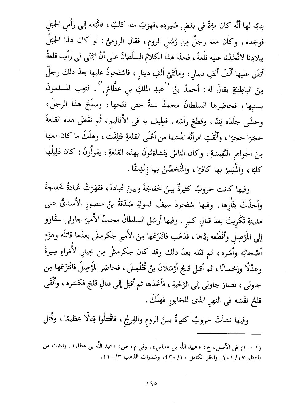 وَفِيهَا نَشَأَتْ حُرُوبٌ كَثِيرَةٌ بَيْنَ الرُّومِ وَالْفِرِنْجِ فَاقْتَتَلُوا قِتَالًا عَظِيمًا وَقُتِلَ