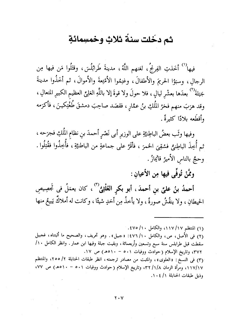 [ثُمَّ دَخَلَتْ سَنَةُ ثَلَاثٍ وَخَمْسِمِائَةٍ]
