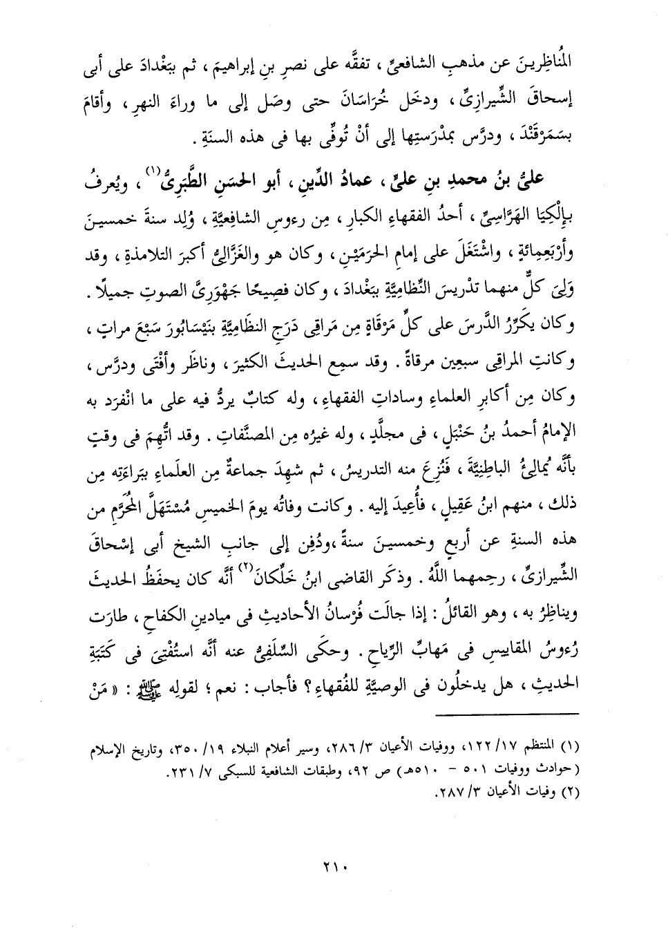 الْمُنَاظِرِينَ عَنْ مَذْهَبِ الشَّافِعِيِّ، تَفَقَّهَ أَوَّلًا عَلَى نَصْرِ بْنِ إِبْرَاهِيمَ ثُمَّ بِبَغْدَادَ عَلَى أَبِي إِسْحَاقَ الشِّيرَازِيِّ وَدَخَلَ خُرَاسَانَ حَتَّى وَصَلَ إِلَى مَا وَرَاءَ النَّهْرِ، وَأَقَامَ بِسَمَرْقَنْدَ وَدَرَّسَ بِمَدْرَسَتِهَا إِلَى أَنْ تُوُفِّيَ فِي هَذِهِ السَّنَةِ.