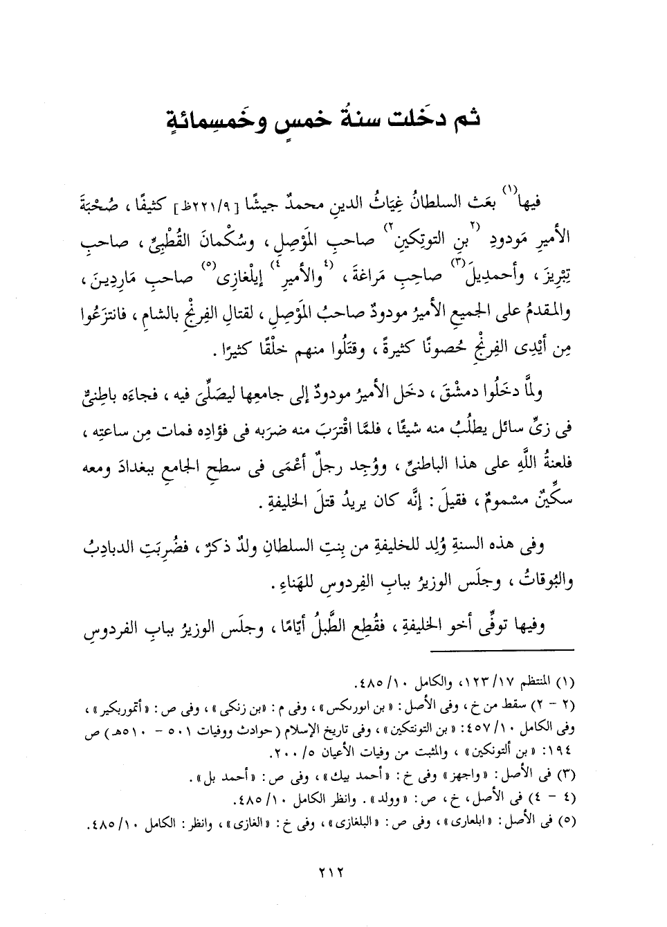 [ثُمَّ دَخَلَتْ سَنَةُ خَمْسٍ وَخَمْسِمِائَةٍ]