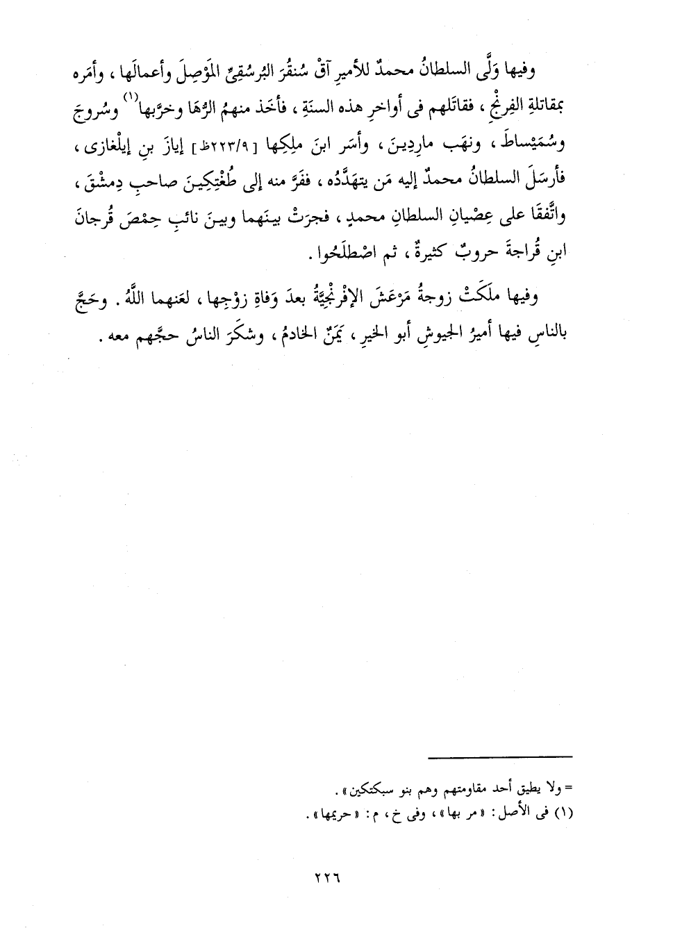 وَفِيهَا مَلَكَتْ زَوْجَةُ مَرْعَشَ الْإِفْرِنْجِيَّةُ، بَعْدَ وَفَاةِ زَوْجِهَا، لَعَنَهُمَا اللَّهُ، وَحَجَّ بِالنَّاسِ فِيهَا أَمِيرُ الْجُيُوشِ أَبُو الْخَيْرِ يَمَنٌ الْخَادِمُ، وَشَكَرَ النَّاسُ حَجَّهُمْ مَعَهُ.