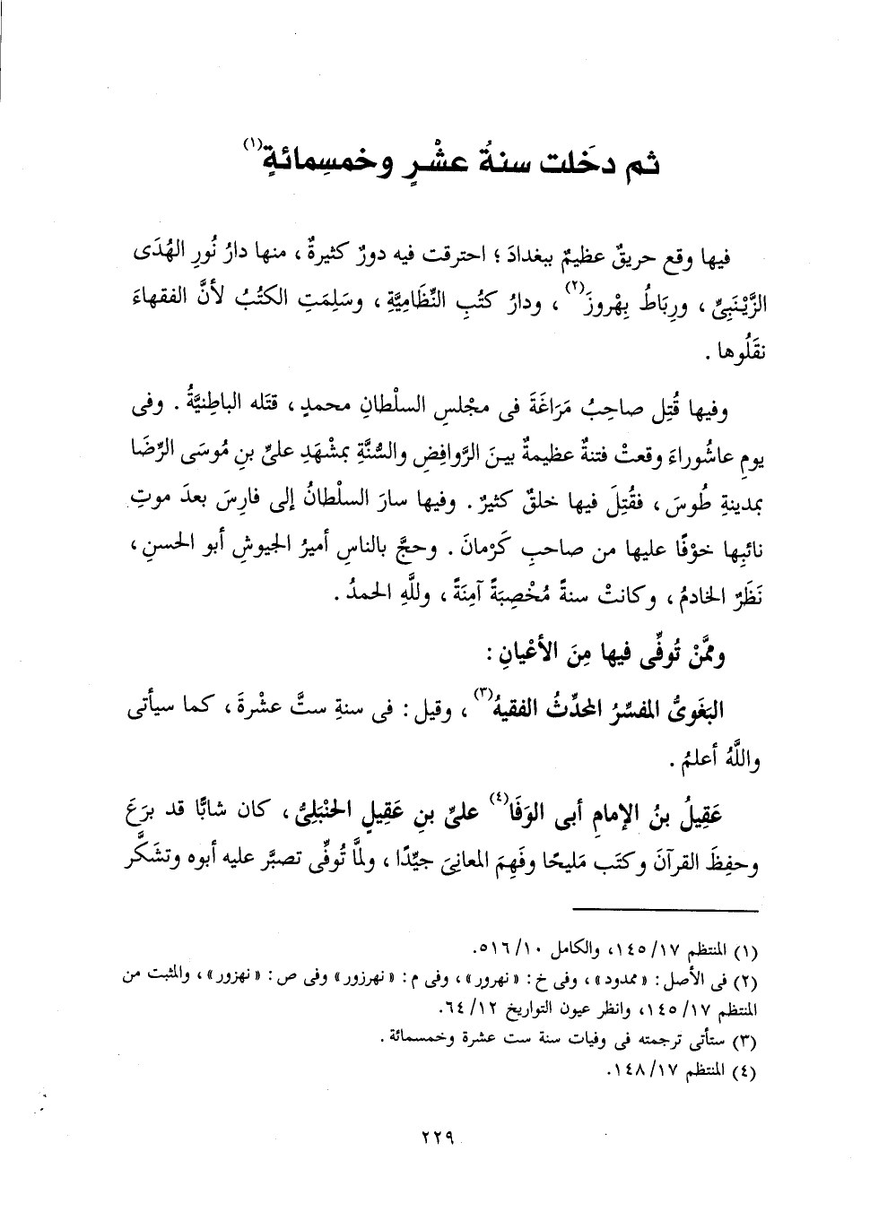 الْبَغَوِيُّ الْمُفَسِّرُ الْمُحَدِّثُ الْفَقِيهُ، وَقِيلَ: فِي سَنَةِ سِتَّ عَشْرَةَ، كَمَا سَيَأْتِي، وَاللَّهُ أَعْلَمُ.