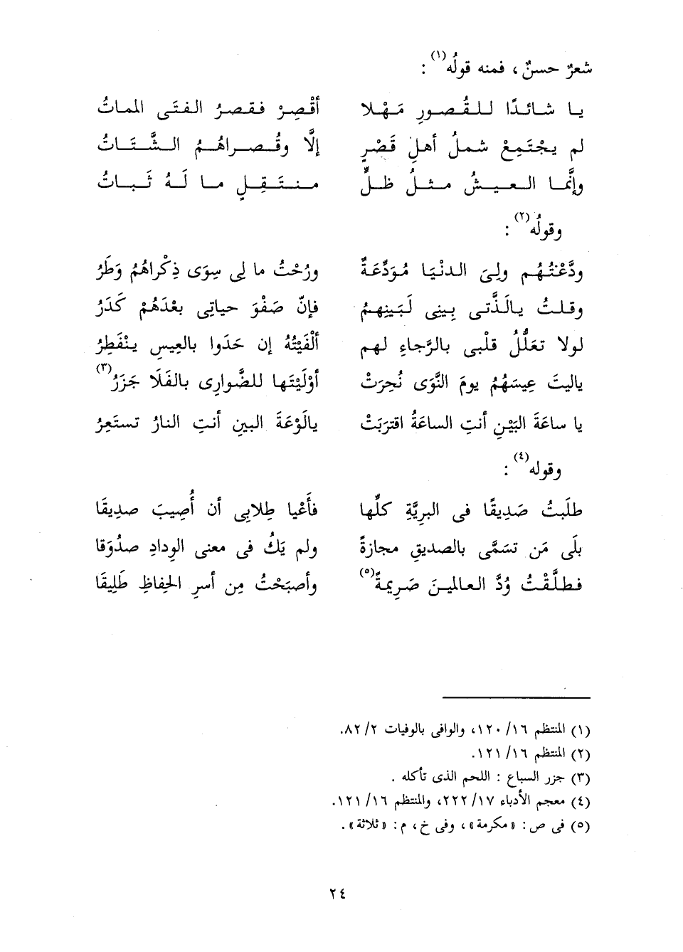 طَلَبْتُ صَدِيقًا فِي الْبَرِيَّةِ كُلِّهَا ... فَأَعْيَا طِلَابِي أَنْ أُصِيبَ صَدِيقَا