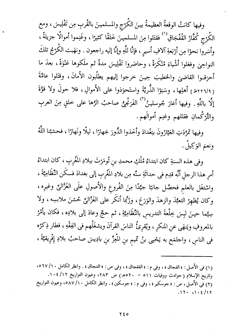 وَفِيهَا أَغَارَ جُوسْلِينُ الْفِرِنْجِيُّ صَاحِبُ الرُّهَا عَلَى خَلْقٍ مِنَ الْعَرَبِ وَالتُّرْكُمَانِ فَقَتَلَهُمْ وَغَنِمَ أَمْوَالَهُمْ.