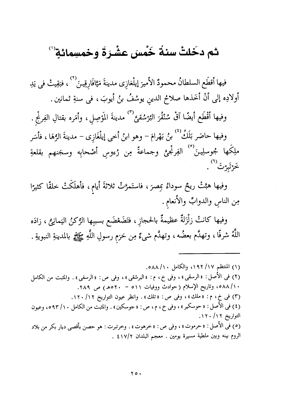 [ثُمَّ دَخَلَتْ سَنَةُ خَمْسَ عَشْرَةَ وَخَمْسِمِائَةٍ]