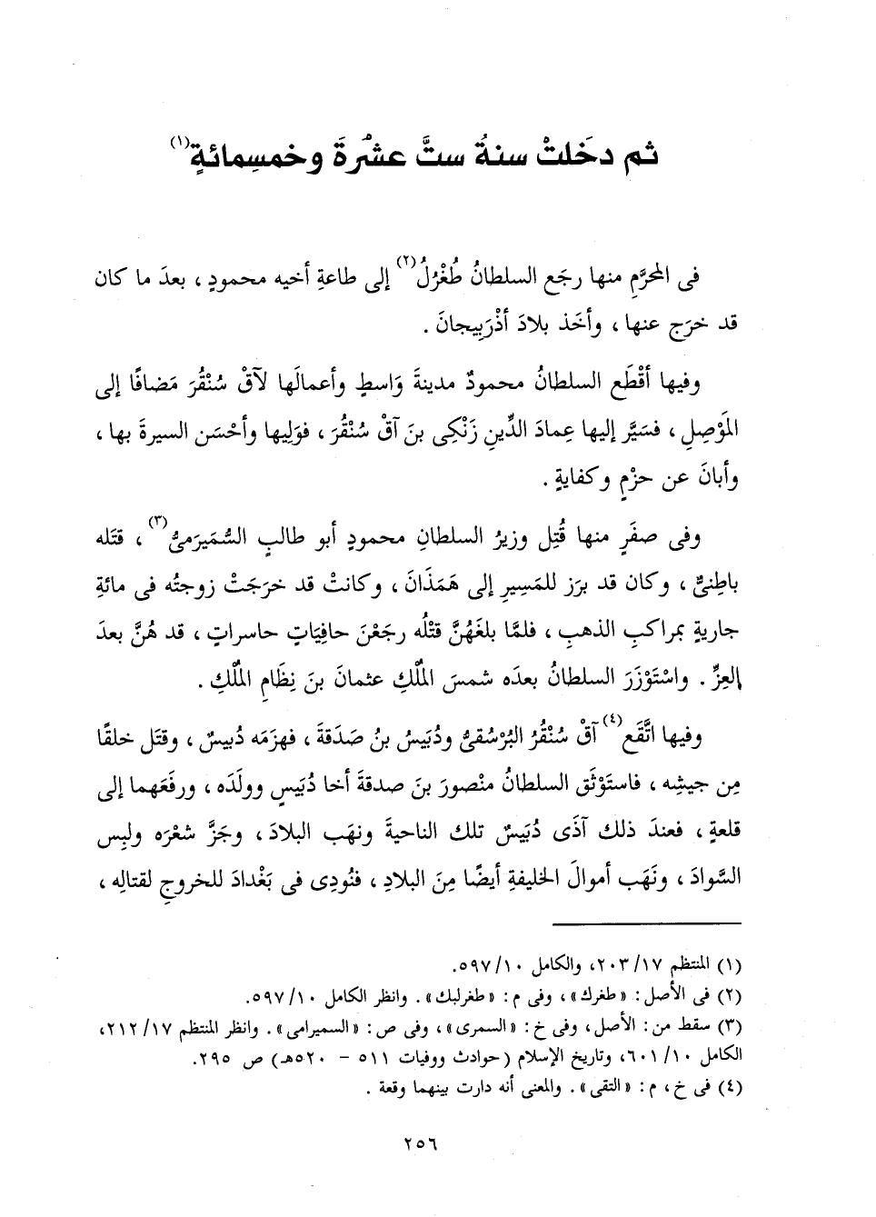 [ثُمَّ دَخَلَتْ سَنَةُ سِتَّ عَشْرَةَ وَخَمْسِمِائَةٍ]