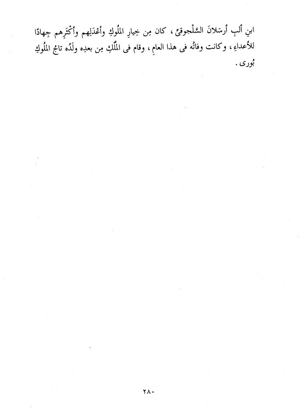 بْنِ أَلْبِ أَرْسَلَانَ السَّلْجُوقِيِّ، كَانَ مِنْ خِيَارِ الْمُلُوكِ وَأَعْدَلِهِمْ وَأَكْثَرِهِمْ جِهَادًا لِلْأَعْدَاءِ، وَكَانَتْ وَفَاتُهُ فِي هَذَا الْعَامِ، وَقَامَ مِنْ بَعْدِهِ وَلَدُهُ تَاجُ الْمُلُوكِ بُورَى