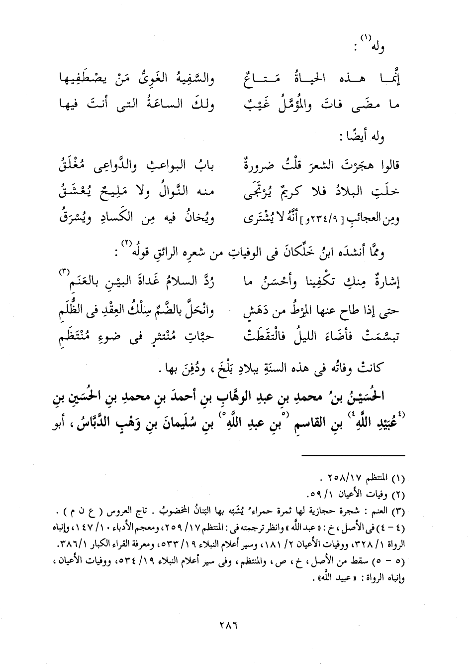 وَمِمَّا أَنْشَدَهُ ابْنُ خَلِّكَانَ فِي الْوَفَيِّاتِ مِنْ شِعْرِهِ الرَّائِقِ قَوْلُهُ: