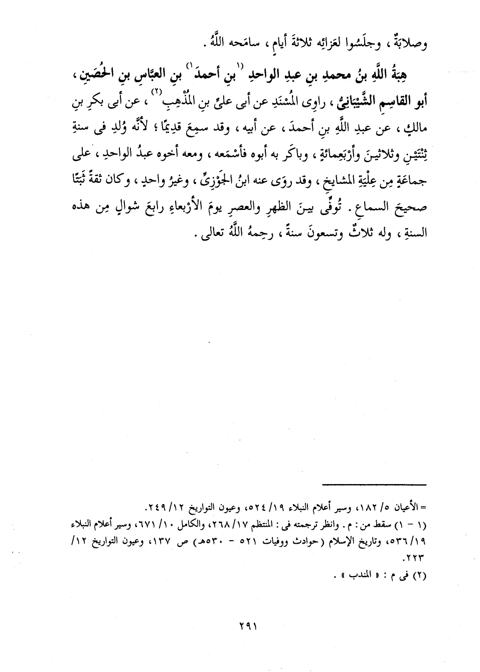هِبَةُ اللَّهِ بْنُ مُحَمَّدِ بْنِ عَبْدِ الْوَاحِدِ بْنِ أَحْمَدَ بْنِ الْعَبَّاسِ بْنِ الْحُصَيْنِ