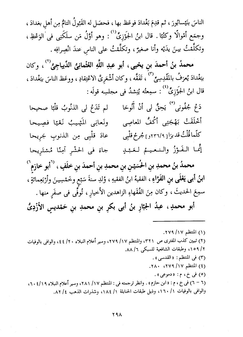 النَّاسَ بِنَيْسَابُورَ، ثُمَّ قَدِمَ بَغْدَادَ فَوَعَظَ بِهَا، فَحَصَلَ لَهُ الْقَبُولُ التَّامُّ مِنْ أَهْلِ بَغْدَادَ، وَجَمَعَ أَمْوَالًا وَكُتُبًا، قَالَ ابْنُ الْجَوْزِيِّ: وَهُوَ أَوَّلُ مَنْ سَلَكَنِي فِي الْوَعْظِ، وَتَكَلَّمْتُ بَيْنَ يَدَيْهِ وَأَنَا صَغِيرٌ، وَتَكَلَّمْتُ عَلَى النَّاسِ عِنْدَ انْصِرَافِهِ.