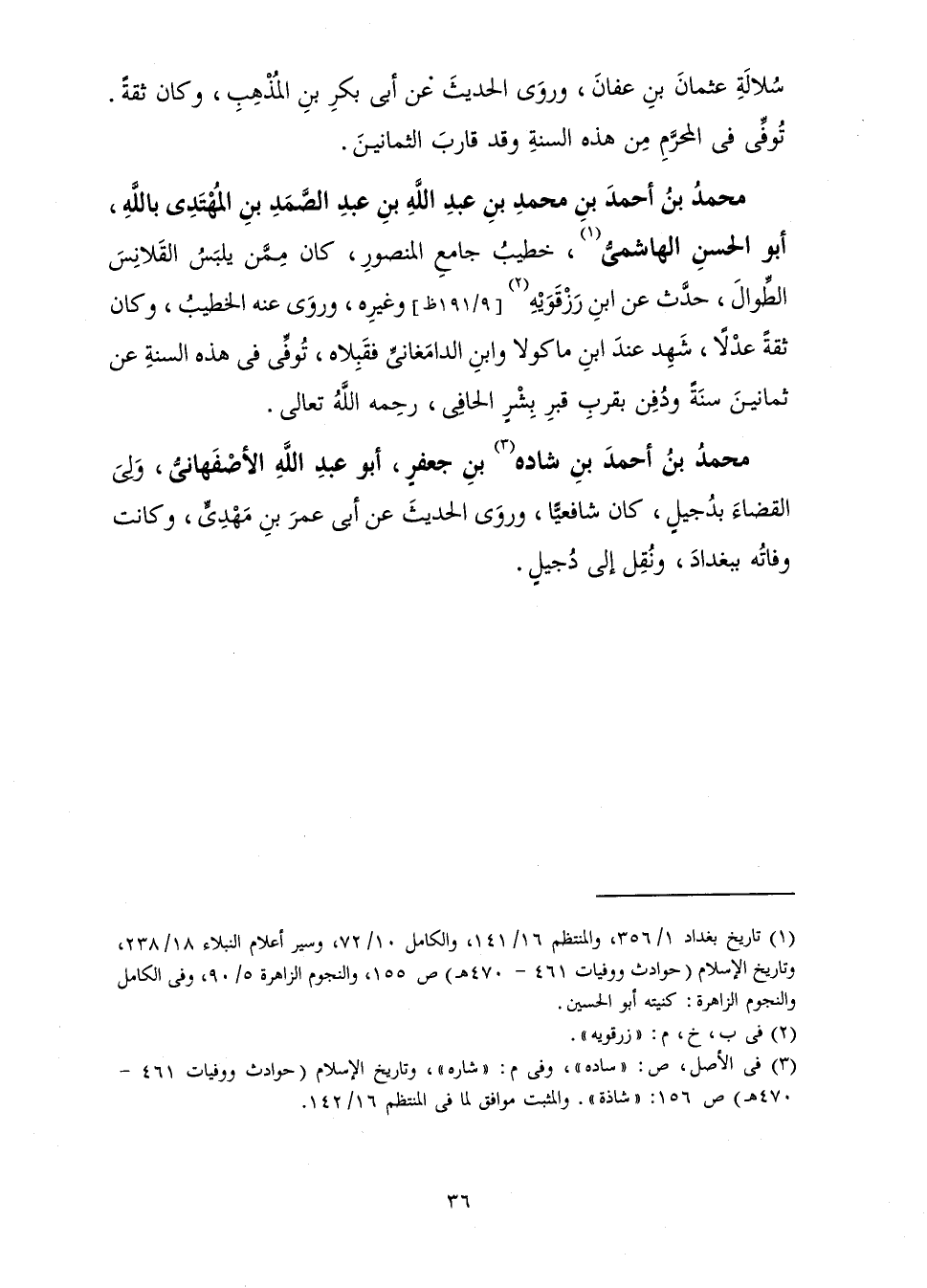 سُلَالَةِ عُثْمَانَ بْنِ عَفَّانَ وَرَوَى الْحَدِيثَ عَنْ أَبِي بَكْرِ بْنِ الْمُذْهِبِ، وَكَانَ ثِقَةً تُوُفِّيَ فِي الْمُحَرَّمِ مِنْ هَذِهِ السَّنَةِ، وَقَدْ قَارَبَ الثَّمَانِينَ.